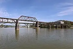 pedestrian trail that spans half the river, former Louisville and Nashville Railroad bridge