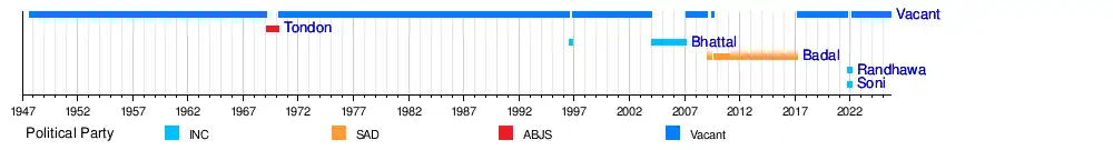 Balram Das Tandon 12 February 1997 26 February 2002 Bhartiya Janata Party Prakash Singh Badal 11th