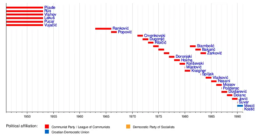 Branko KostićStjepan MesićStipe ŠuvarBorisav JovićStane DolancRaif DizdarevićHamdija PozderacLazar MojsovSinan HasaniRadovan VlajkovićMika ŠpiljakSergej KraigherCvijetin MijatovićLazar KoliševskiFadil HoxhaStevan DoronjskiVidoje ŽarkovićVladimir BakarićPetar StambolićMitja RibičičRatomir DugonjićKrste CrvenkovskiKoča PopovićAleksandar RankovićĐuro PucarFilip LakušDimitar VlahovMoša Pijade