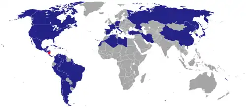 Map of diplomatic missions in Nicaragua