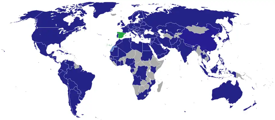 1. ^ a b c d e f g h i j k l m n o p q r s t u v w x y z aa ab ac ad ae af ag ah ai aj ak al am an ao ap aq ar as at au av aw ax ay az ba bb bc bd be bf bg bh bi bj bk bl bm bn bo bp bq br bs bt bu bv bw bx by bz ca cb cc cd ce cf cg ch ci cj ck cl cm cn co cp cq cr cs ct cu cv cw cx cy cz da db dc dd de df dg dh di dj dk dl dm dn do dp dq dr ds dt du dv dw dx dy dz ea eb ec ed ee ef eg eh ei ej ek el em en eo ep eq er es et eu ev ew ex ey ez fa fb fc fd fe ff fg fh fi fj fk fl fm fn fo fp fq fr fs "Lista del Cuerpo Diplomático" [List of the Diplomatic Corps] (PDF) (in Spanish). Ministry of Foreign Affairs (Spain). 28 October 2024. Retrieved 9 January 2024.
