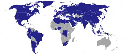 1. ^ a b c d e f g h i j k l m n o p q r s t u v w x y z aa ab ac ad ae af ag ah ai aj ak al am an ao ap aq ar as at au av aw ax ay az ba bb bc bd be bf bg bh bi bj bk bl bm bn bo bp bq br bs bt bu bv bw bx "Diplomatic List". Ministry of Foreign Affairs (Czech Republic). 16 February 2024. Retrieved 23 February 2024.