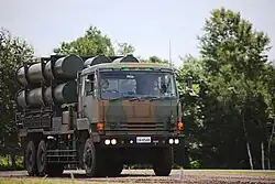 Based on the Type 16 (Common Tactical Wheeled Vehicle programme), first orders made with 2024 budget, delivery from 2027. An additional 8 were ordered with the 2025 budget. Up to 83 vehicles are planned in the 2025 budget. Planned to replace the Type 96 120 mm Self-propelled Mortar.[74][75] | ||