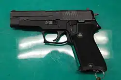 | SIG Sauer P220 | Semi-automatic pistol | 9×19mm Parabellum | Made under license by Minebea, designated the Minebea P9. Used with a leather holster or Safariland leg holster. Standard issue as of 1982.[2] | ||