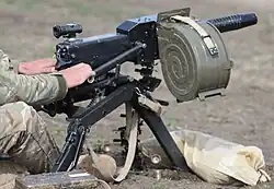 Among firearms associated with the Somali National Army and reported by Jane's Infantry Weapons 2009/10 were Soviet TT pistols, British Sterling submachine guns; German Heckler & Koch G3 and Belgian FN FAL assault rifles, U.S. M14 rifles, Soviet RPD machine guns; Soviet RPK machine guns; Soviet RP-46 machine guns; French AA-52 machine guns; Belgian FN MAG machine guns; Soviet DShK heavy machine guns; U.S. M2 Browning .50 cal heavy machine guns; and U.S. M79 grenade launchers and Soviet RPG-2 grenade launchers.[15]