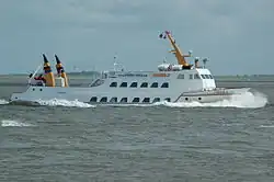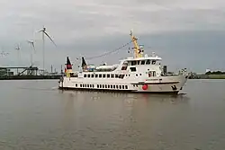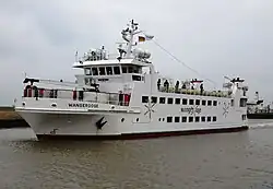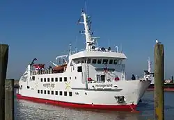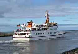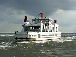 The list of the ferries of the East Frisian Islands contains the ferries currently serving the islands of Borkum, Juist, Norderney, Baltrum, Langeoog, Spiekeroog and Wangerooge. The East Frisian Islands, located between the Wadden Sea and the North Sea in Germany, have been inhabited for centuries by people and have long been a popular holiday region in East Friesland. Traditionally, these ferries serve to transport people and goods, and are a most important link between the mainland and island ports.