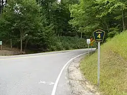 There are three state-maintained reference routes in Warren County. A reference route is a road owned by the state but are signed only with reference markers. The shortest of these is NY 911E, an east–west highway connecting NY 32 to NY 254.[2] The route is the only portion of NY 32B's former alignment in Warren County that did not become part of NY 254.[23] Although it is the shortest reference route in the county, the New York State Department of Transportation has reserved NY 656, a replacement touring route designation, for the highway. A date for the renumbering has not been determined.[25] The longest of Warren County's three reference routes is NY 917A,[2] better known as the Prospect Mountain Veterans Memorial Highway.[25] The final reference route is NY 912Q, a two lane freeway spur leading east from I-87 exit 22.[3][29]