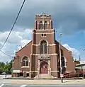 - ^ The structure was erected for Trinity Congregational Church, and completed in March 1896.[120] Trinity sold to St. James AME in November 1925.[121] The structure was gutted by fire in January 1938, with the loss of the roof and interior.[122] The rebuilt structure dedicated in May 1941.[123] The church was gutted by fire again in March 1950, with only the front facade and two side walls saved.[124] The new structure dedicated in April 1953.[125]