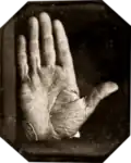 French actress Sarah Bernhardt twisted her right knee during a 1904 production of Tosca. She experienced pain which worsened in 1914 and she couldn't put any weight on it. After trying a plaster cast for six months, she wrote to her physician, Samuel Jean Pozzi, asking that he amputate her leg above the knee.[19] On 22 February 1915, the leg was amputated above the knee with an anterior flap. The leg was taken to the Faculty of Medicine in Bordeaux for a pathological examination. French newspaper Sud Ouest reported that Bernhardt's leg had been found in the Faculty's basement in 2008, only to produce a left leg that had been amputated below the knee. The whereabouts of her leg are unknown.[20] | |
