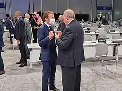 | Tallinn, Tapa Army Base | 28–29 September | Macron attended the EU Digital Summit and held a bilateral meeting with German Chancellor Angela Merkel.[20] He then visited troops together with British Prime Minister Theresa May and Estonian Prime Minister Jüri Ratas at Tapa Army Base.[21] | ||