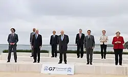 | Taormina | 26–27 May | Macron attended the G7 summit in Taormina.[6] He held separate bilateral meetings with other heads of government, including British Prime Minister Theresa May, Canadian Prime Minister Justin Trudeau and Japanese Prime Minister Shinzō Abe. | ![]() | |