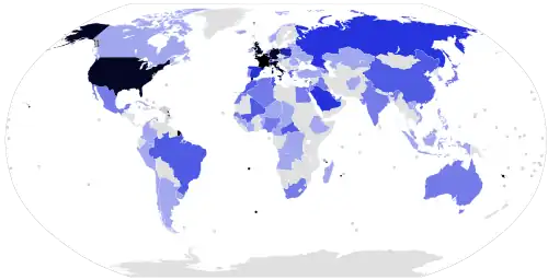 François Hollande, the 24th President of France, made 183 presidential trips to 83 states internationally during his presidency, which began with his inauguration on 15 May 2012 and ended with the inauguration of Emmanuel Macron on 14 May 2017.