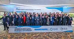 Then he attended the Official Opening and the I Plenary Session of the Summit, as well as the taking of the official photo of the Heads of State and Government participating in the event.[44][45] |
