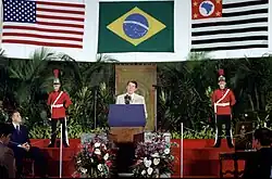 | 16 | St. George's | February 20 | Met with Governor General Paul Scoon and Prime Minister Herbert Blaize, and with the Prime Ministers of Barbados, Dominica, Jamaica, St. Lucia, St. Christopher and Nevis, St. Vincent and the Grenadines, Antigua and Barbuda, and Trinidad and Tobago. Dedicated a memorial to U.S. servicemen. | ![]() | |