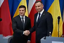 | 37 | Warsaw, Chełm | 5 April | First announced international visit since the invasion. Met with President Andrzej Duda and Prime Minister Mateusz Morawiecki in Warsaw. In Chełm, he met the mayors of Lublin, Przemyśl, Rzeszów and Chełm (Jakub Banaszek). | ||