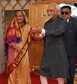 Sheikh Hasina with Indian Vice President Hamid Ansari during a bilateral meeting on the sidelines of the 11th ASEM Summit in Ulaanbaatar , Mongolia on July 16, 2016The following is a list of international prime ministerial trips made by Sheikh Hasina during her second , third , fourth and fifth terms as Prime Minister of Bangladesh from 2009 to 5th August 2024 , as well as visits made during her first term between 1996 and 2001.