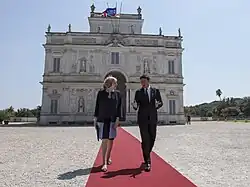 28–29 September May visited NATO's Tapa Base with President Kersti Kaljulaid and French President Emmanuel Macron and all displayed solidarity against Russia.[73] She also attended a summit in the capital city of Tallinn and met with, among others, German Chancellor Angela Merkel.[74] Downing Street said May and Merkel agreed on the need to settle the issue of EU citizens' rights quickly[74] and that Merkel also hailed ‘good progress’ in latest Brexit talks as well.[75]