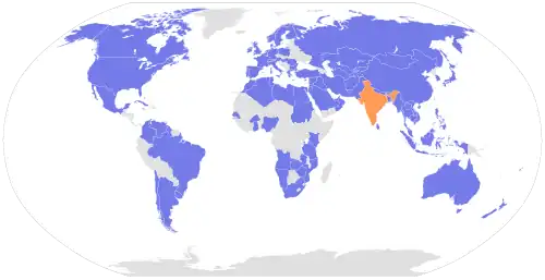 Austria, Bahrain, Belgium, Brunei, Croatia, Cyprus, Denmark, Egypt, Fiji, Ghana, Greece, Guyana, Iran, Ireland, Israel, Jordan, Kenya, Kuwait, Mexico, Mongolia, Mozambique, Namibia, Netherlands, Nigeria, Oman, Pakistan, Papua New Guinea, Palestine, Philippines, Poland, Portugal, Rwanda, Seychelles, Spain, Sweden, Tajikistan, Tanzania, Trinidad and Tobago, Turkey, Turkmenistan, Uganda, Ukraine, Vatican City, Vietnam |