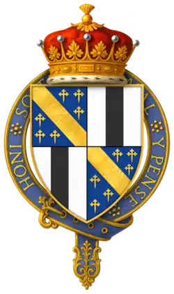 Hull seems to have died at the battle, or immediately after. According to P.S. Lewis, "Wedgwood's emendation of Stow is unwary. An English Chronicle, ed. J. S. Davies, Camden Old Series, 64 (1856), is suffering from a misplaced editorial semi-colon on p. 70. Hull's inquisition post mortem (P.R.O. C 139/155, no. 41) in fact gives the date of his death fictitiously as 3 Sept. 1453. On his accounts the date is given as 18 July 1453 (P.R.O. E 364/192, m. 1); Hull must have been killed on 17 July or died of his wounds the following day. - ^ a b "Knights of the Orders of Chivalry". Debretts. Archived from the original on 17 December 2011. Retrieved 5 March 2012.