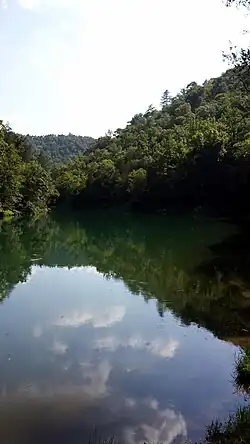 - Mirror Lake, 35°57′54″N 092°10′13″W / 35.96500°N 92.17028°W, el. 427 feet (130 m) [4]