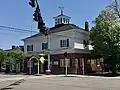 Eligibility undetermined | Typical early to mid-19th century vernacular wood frame structure, originally located across Main Street on the farmstead of pioneer settler John Hutchinson where it served as a barn; moved to its present site in 1909. Has served over the years as a veterinary hospital, cobbler's shop, and ice cream parlor; now home to the Moor Pat gastropub. |