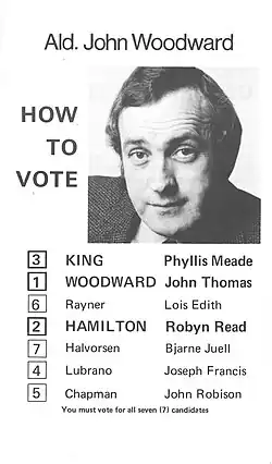 - ^ "New men at the Town Hall". The Sydney Morning Herald. 28 September 1972. p. 3.
