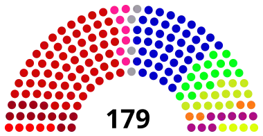 Below is the distribution of the 179 seats as it appeared after the 1998 election, as well at the distribution at the end of the term.[1]