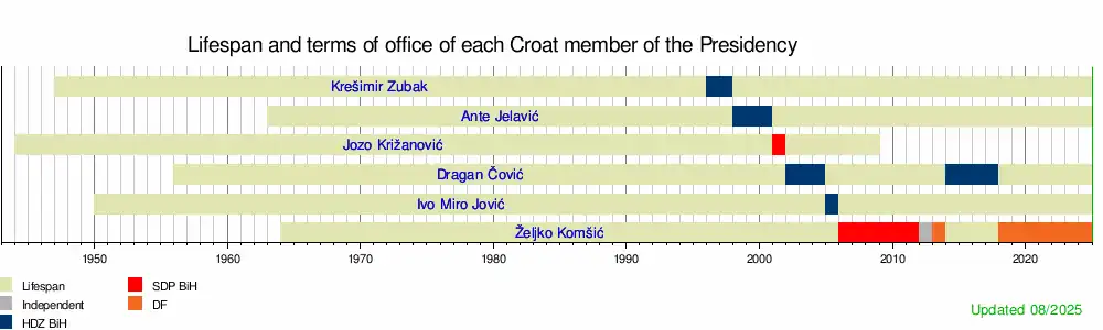 - ^ "Chronology of the Presidency of BiH". Presidency of Bosnia and Herzegovina. Archived from the original on 9 April 2021. Retrieved 9 April 2021.