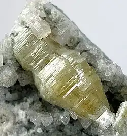 (IUPAC: dimagnesium tetraoxosilicate) - Wagnerite (wagnerite: IMA2003 s.p., 1821 Rd) 8.BB.15 [9] [10] [11]