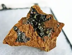 Note: possibly a chemical analysis artifact as its occurrence is improbable at the type locality. - Zippeite (zippeite: IMA1971-002a Rd) 7.EC.05 [281] [282] [283]