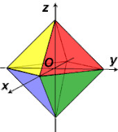 Regular tetrahedron of side s and mass m with an axis of rotation passing through a tetrahedron's vertex and its center of mass