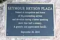 Plaza at the front of the Student Center | Dedication | Seymour Bryson | "Seymour Bryson Plaza Named in recognition and honor of his outstanding service and devotion during a career spanning more [...]" | 2014 September |