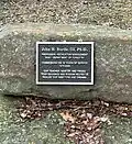 Southwest of the Neckers Building along a sidewalk by the parking lot before a large pine tree | Memorial | Wilbur C. McDaniel | "Wilbur C. McDaniel 1910 - 1993 Math Dept. CHM. 1947 - 1960 | Unknown |