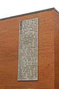 Northeast side of the Communications inside a small green space | Dedication | Ralph E. Becker Obelisk of Honor | "CMCMA Honor Rolle of Donors [...] | Unknown |