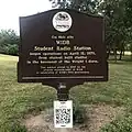 South of the Brush Towers housing area along Logan Drive | Landmark | WDIB Student Radio Station Marker | "On this site WIDB Student Radio Station began operations on April 12, 1970, from the student built studios in the basement of the [...]" | 2020 |