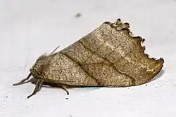 - Falcaria lacertinaria, scalloped hook-tip — throughout