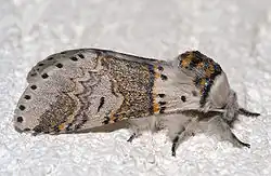 - Gluphisia crenata vertunea, dusky marbled brown — rare immigrant