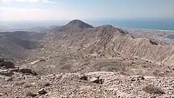 Most of the country's mountains, with altitudes higher than 1,000 metres (3,300 feet), are located in the emirate of Emirate of Ras Al Khaimah, and it is no coincidence that some of its most important summits are located exactly on the border with the Sultanate of Oman, as, in some cases, their position was taken as a reference for the drawing of the border limits between both countries.[4][5]
