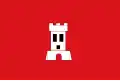The flag features eight equal horizontal stripes of red alternating with the coat of arms. | ||