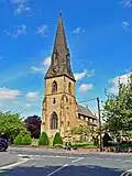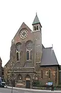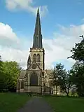 1878–87 | A red brick church with stone dressings in Early English style. At the west end is a pair of square turrets with pyramidal roofs. The church was damaged by bombing in the Second World War and subsequently restored.[1][56] | II* |