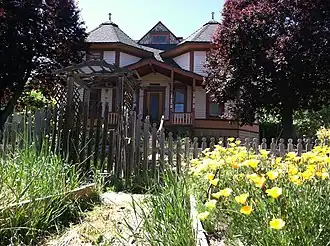 NRHP, Victorian-style, two-and-a-half story redwood framed structure with an octagonal folly.