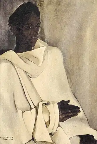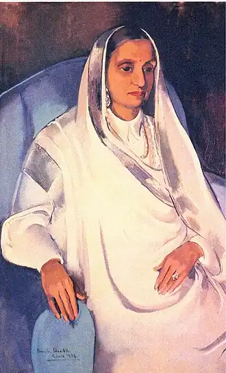 At the encouragement of her mother, Sher-Gil was briefly engaged to aristocrat Yusuf Ali Khan, and painted his portrait in Paris.[36] |