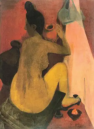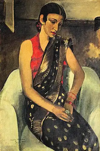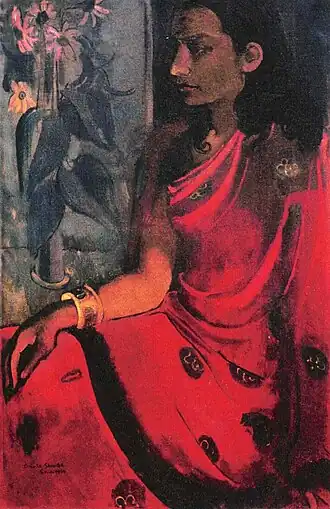 This is a list of paintings by Hungarian-born Indian artist Amrita Sher-Gil (1913–1941).[1] Over 60 of her paintings, of which most were portraits and self-portraits, were created between 1930 and 1932 in Hungary and France.[2] 19 were self-portraits painted in Europe between 1930 and 1934, and two, including one in a blue sari, were later completed in India.[3] Several of her paintings were of nudes; some of herself and others based on models of which most were female.[4]