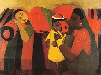 Sher-Gil later wrote that "towards the end of 1933 I began to be haunted by an intense longing to return to India, feeling in some strange inexplicable way that there lay my destiny as a painter".[6] She subsequently painted Self-Portrait as a Tahitian in early 1934, while still in Paris.[8][a]