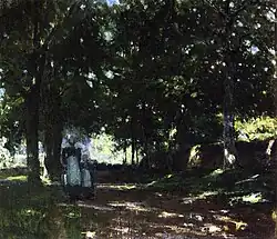 Tanner arrived in France in January 1891. Summered in Brittany at Pont-Aven and Concarneau.[60] Bois d'Amour is near Pont-Aven.[60] Concarneau is about 15 km from Pont-Aven.[60] | Woman and child walking on a path in the woods. | Bois d'Amour[60] | ![]() | ||