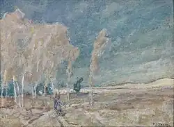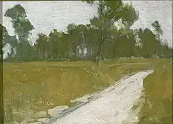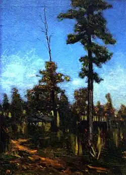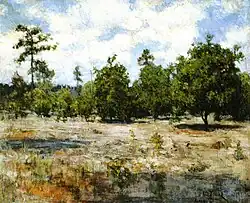 Similarity: Tanner painted a work titled "Scrub Pine Land", exhibited in 1894 and unknown today, painted in Florida.[48] | untitled landscape[46][47] | Robert W. Woodruff Library, Atlanta University Center, Oil on canvas, 33 1/2 x 27 1/4 in.[46] | ![]() | ||
