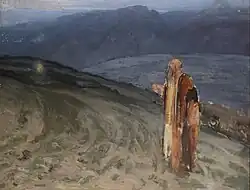 Tanner visits Highlands, North Carolina, with the idea that he could make money with his camera and pay for the trip.[40] | Painting likely of the Cumberland Mountains.[41] | Mountain Landscape, Highlands North Carolina[39] | Doris Ulman Galleries, Berea College Art Department, Kentucky, 140.O.95. Oil on canvas. 23" x 36"[39][42] | ![]() | |