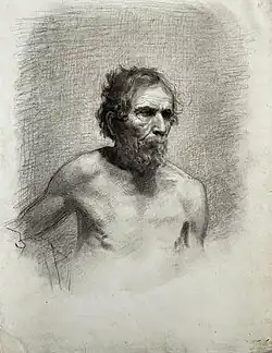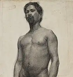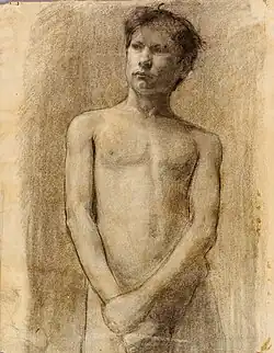 Tanner spent time studying the nude form at the Pennsylvania Academy of Fine Art.[29] | Painting was a study for a planned painting of a mythological scene of Androcles with a lion.[29] | Study for Androcles[29] | Private collection. Oil on canvas, 31' x 18"[29] | ![]() | |
