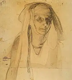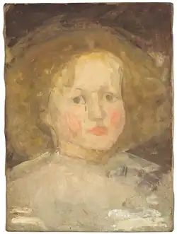 Portrait of a girl; "My Sister Sara" is written on lower right. Tanner had a sister Sarah Elizabeth Tanner who was 9 years old in 1882.[18] | Sister Sara[17] Done while Tanner was at the Philadelphia Academy. | Private collection. Oil on canvas, 16 x 13 in.[17] | ![]() | ||