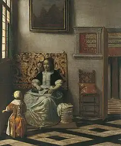 The following is an incomplete list of paintings by Pieter de Hooch, a Dutch Golden Age painter, that are generally accepted as autograph by Peter C. Sutton and other sources. The list is more or less in order of creation, starting from around 1648 when Pieter de Hooch began painting on his own in Delft. Later he moved to Amsterdam and his interiors seem somewhat grander in style. Most of his works are genre scenes involving daily life, but he also made at least one religious allegory.